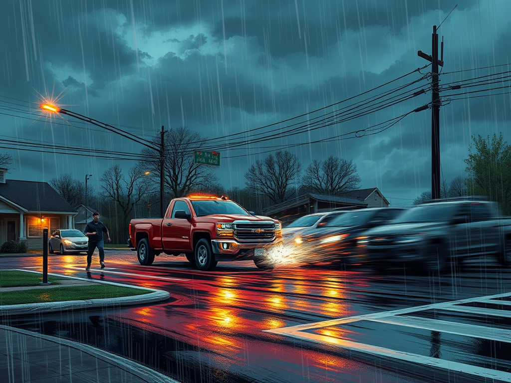 The evening sky casts a dim light as you drive home, the day’s exhaustion creeping in. The road is slick from earlier rain. As you approach an intersection, a sudden motion grabs your attention. A pedestrian bolts across the street. Before you can fully react, you notice a speeding pickup truck swerving to avoid the pedestrian. Its tires screech on the wet pavement. Time seems to slow as the truck loses control, skidding directly into your path. The impact is jarring, the sound of metal crushing metal deafening. In the aftermath, silence takes over, broken only by the sound of your breath as you process what just happened.